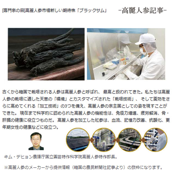※高麗人参のメーカーから提供情報(韓国の農民新聞社記事より)の抜粋になります。